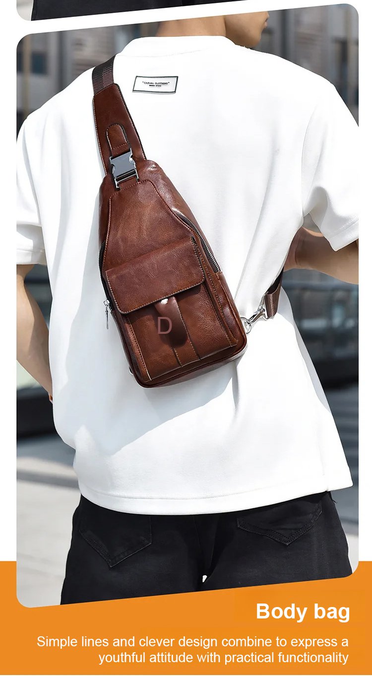 Premium Leather Water-Resistant Chest Bag, Single Shoulder Crossbody